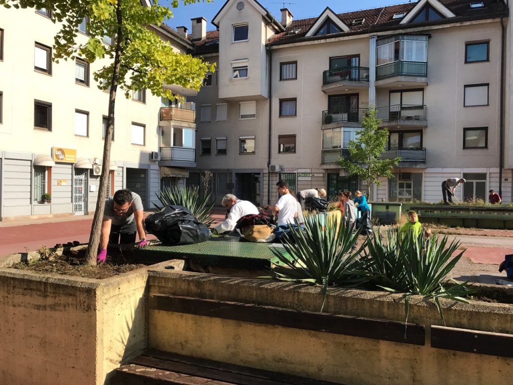 Za veliki finale letošnjega drugega CITO tedna in za zadnjo akcijo CITO izziv 2017 smo ponovno združili moči z Mestno občino Ljubljana in Snago. Med predlaganimi lokacijami smo se odločili za igrišče na Selanovem trgu, ker je izgledalo najbolj uborno. Na domenjeno soboto se nismo ravno izkazali s točnostjo, saj je bila prva na lokaciji ravno Zala z Oddelka za varovanje okolja MOL. Potem so začeli kapljati bližnji in daljni geolovci in akcija je stekla v polnem zamahu. Lotili smo se urejanja cvetličnih korit, puljenja plevela, pobiranja smeti in kaj kmalu smo napolnili vse črne plastične vreče, ki smo jih imeli na voljo. Čeprav temperature niso več poletne, nam je bilo pošteno vroče. Ker je igrišče ujeto med bližnje bloke, smo upali, da se nam pridruži tudi kak domačin, a vse kar smo dobili, so bili komentarji obiskovalcev iz bližnjega bifeja. Čisto drugače pa se je odzvala lastnica drugega lokala, ki nas je povabila na brezplačno kavico. Uganite, kam smo zavili po opravljenem delu? Le še kak poteg s čopičem je manjkal in otroško igrišče bi ponovno zasijalo v vsej svoji veličini. A ker igrišče čaka na temeljito prenovo naslednje leto, smo ta del taktično izpustili.