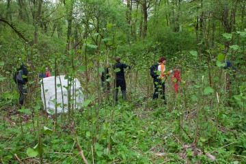 Strah pred dežjem je imel velike oči. Simona iz kompaskov je uvodno predavanje o dresniku zato skrajšala, a bilo nič manj zanimivo in poučno. Nabiramo olesenel lanski dresnik v velike bele vreče, smo na hitro razložili udeležencem. Manjša skupina je ostala na izhodiščnih koordinatah in pospravila tamkajšnje rastišče, glavnina pa se nas je odpravila na slab kilometer oddaljeno plantažo dresnika, kjer je bilo rjavih stebel v skoraj neomejenih količinah.