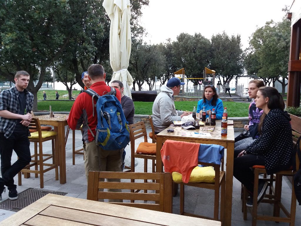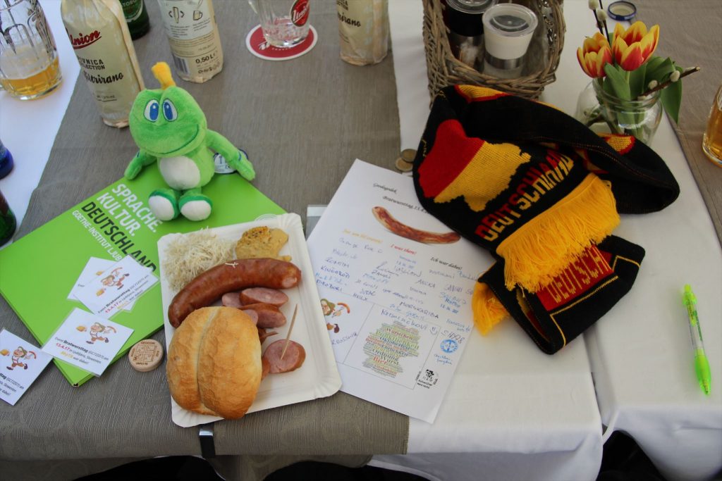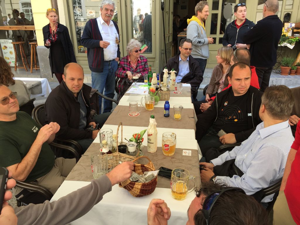 Središče dogajanja je bila sicer miza sosednje restavracije, kjer gostom strežejo tudi v zadnjem času zelo priljubljene nefiltrirane napitke, a je bila premajhna, zato smo geolovci v gručah zasedli širši prostor okoli nje. Klepet je stekel, vsake toliko pa je kdo za nekaj minut poniknil v sosednji lokal in prišel iz njega s pladenjčkom klobasaste dobrote in izdatnim odmerkom gorčice in hrena. Za vse ostalo – nemško dekoracijo, ličen dnevnik, tematske sledjivčke in osebne spominke za vsakega prijavljenega udeleženca – je poskrbel Lars. Najbrž smo zaradi tega šele po dogodku ugotovili, da ni prišel v irhastih hlačah, ki jih sicer, vsaj tako je napisal v opisu dogodka, vedno nosi. To veselje nam je prihranil za kako drugo priliko. Kot je običajno za take dogodke, so nekateri pohiteli nazaj v službo, drugi pa so posedeli še krepko čez napovedano uro zaključka. Tretji pa so razmišljali, kako se do večera znebiti kalorij za eno kranjsko, da bi si lahko brez slabe vesti v Kranju privoščili še kebab.