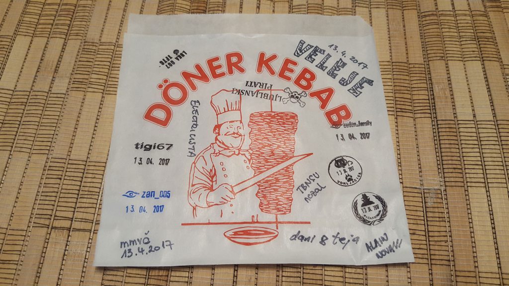 Kolegi z gocacher.de so nas poučili, da je Dönerstag kot izvirno geolovska tradicija nastal leta 2007, ko se je nekomu utrnila ideja, da bi na Veliki četrtek organiziral mega geolovski dogodek. Nemške geolovce je povabil, naj se hkrati odpravijo v katero koli prodajalno döner kebaba v Nemčiji in vpišejo udeležbo na dogodku Döner’s Tag 2007, ki je sicer potekal v Berlinu. Mega statusa ni dobil, čeprav je bil s 595 udeleženci najbolj obiskan dogodek v Nemčiji tistega leta. In tudi pregledovalci niso več dovolili objave takih multicentričnih dogodkov. Tradicija pa je ostala. Z nekaj pomoči s sedeža igre se je letos razširila na skoraj 1.800 dogodkov po vsem svetu. Slovenci smo ljubitelji geolovskih spominkov in tudi ljubitelji na orientalski način pripravljenega mesa, najsi je pečeno vodoravno kot majhni svaljki ali nabodala ali navpično v veliki kepi. Dva dobra razloga torej, da smo organizirali kar štiri Dönerstag dogodke. Ti so zdaj za nami. Preberite, kako so potekali, potem pa se lotite pečenja potice!