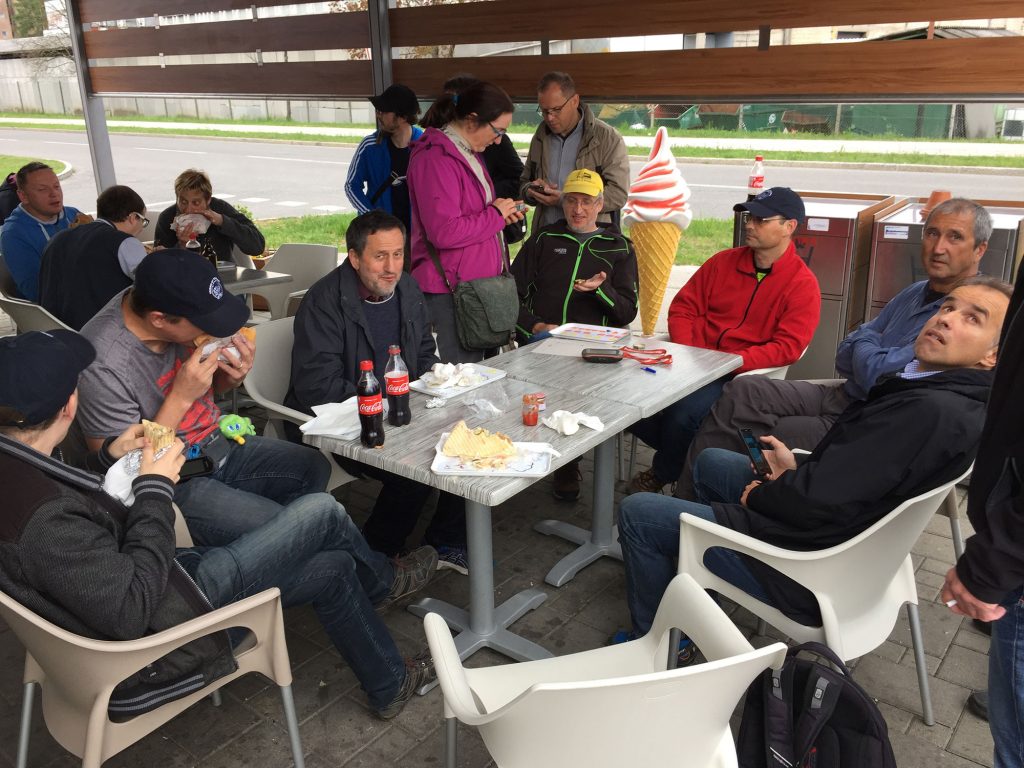 V Ljubljani imamo kar nekaj prodajaln kebaba. Larsus cisalpinus pa se je odločil, da bo geolovcem iz prestolnice med pridobivanjem spominka in telesne teže prikazal nekaj stereotipov o Nemcih in nam kot tradicijo podtaknil izvirno slovensko delikateso, kranjsko klobaso. Zdi se, da mu ni uspelo ne eno ne drugo. 😉 Na prizorišču ni bilo niti enega stereotipnega Nemca, pa tudi Klobasarno so si udeleženci sprva ogledovali, kot da v njej še vedno popravljajo ure. Mu je pa uspelo organizirati izviren in prijeten geolovski dogodek, ki se ga je udeležilo kar 33 ekip. Najbrž ni treba veliko, da zvabiš geolovce na klepet ob hitri malici na tako prijeten pomladni dan. Le spominek in klobasa.