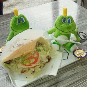 Ko smo v SGK izvedeli, da bo letošnji 13. april nekaj posebnega, smo se seveda takoj odzvali in priključil akciji žabice s prikupnim imenom Signal. Ker pa se trudimo, da se približamo geolovcem v lokalnih okoljih, smo tokratni dogodek sklenili izvesti na Gorenjskem, točneje v Kranju. Tam je že dobro poznan manjši lokal s hitro prehrano Pinki, ki je včasih stal na robu starega dela mesta, kasneje pa se je zaradi birokratskih sporov in neizpolnjenih obljub preselil v središče nakupovalnega območja na Primskovem. Kar nekaj časa je v njegovi stalni ponudbi tudi jed z eksotičnim imenom kebab, ki je po odločitvi s sedeža igre postala rdeča nit številnih srečanj širom naše modre frnikole. Čeprav je bilo kasneje objavljenih in tudi izvedenih še nekaj srečanj po Sloveniji, je bil obisk v Kranju odličen. Ob dogovorjeni uri smo se začeli zbirati, vrsta pred vertikalno postavljenim mesom pa se je povečevala (kar je bilo mogoče na družabnih omrežjih videti v živo). Pa se ni nihče pretirano razburjal zaradi tega. Prvo opravilo je bila postavitev Signala in kebaba za uradno fotografiranje. Slika, ki jo je posnel Culto, je kot naslovnica uradnega albuma obkrožila svet.