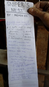 Dne 5.1.2014 se je sredi našega glavnega mesta pojavil zaklad (http://coord.info/GC4TG2C), ki je, kot kaže že ocena, res trd oreh. Tako ocena težavnosti najdbe kot tudi dostopnosti (teren) sta pri njem najvišji. Seveda kot tak predstavlja pravi izziv, katerega pa se lahko lotijo le tisti s pravilno opremo, znanjem in pogumom. V petek 28.03.2014 se je na samem mestu, ob opuščenem stolpu nekdanjih skakalnic Mostec, zbralo kar petnajst ekip zakladolovcev. Srečanje je bilo v znamenju petic. Ne le, da je težavnost zaklada ocenjena s 5/5. Bil je tudi peti dan v tednu, ob petih popoldne. Po spoznavnem klepetu so bile vloge razdeljene in brez logistične podpore nekaj ekip na trdnih tleh, uspeha zagotovo ne bi bilo. Operacija osvobajanja ostrostrelčevega gnezda je potekala gladko in brez zapletov. Diverzantski skupini štirih najbolj pogumnih sta naskok in osvoboditev gnezda uspela v slabih desetih minutah. Po obveznem vpisu v dnevnik in spominskem slikanju je sledila še uspešna vrnitev na varna trdna tla.