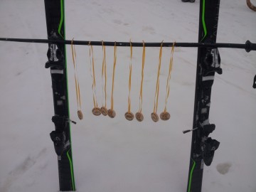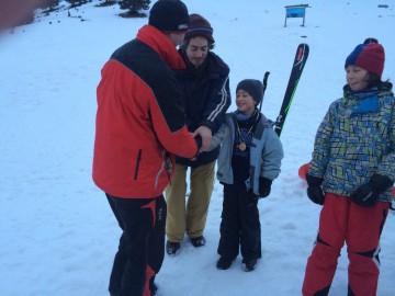 Podelili smo še dve medalji in sicer za najbolj atraktiven spust in najbolj simpatičnega udeleženca. Prva je šla v roke Nejcu, ki je z vratolomnimi saltami z glavo v sneg in nato stoječo vožnjo skozi ciljno črto nedvomno upravičeno pobral tu prvo mesto. Roko na srce pa je bilo tudi nekaj drugih spustov takšnih, da je gledalcem med smehom tudi zastajal dih. Najbolj simpatični udeleženec je bil nedvomno Maksi, tu ni bilo kaj veliko treba razmišljati. Ne le, da nas je nasmejal, ko je lovil Nejca po progi in smo zgolj čakali ali ga bo ugrizinil v zadnjo plat ali ne, izkazal se je tudi kot odličen kandidat za lavinskega psa, v sneg je namreč kopal takšne luknje, da bi šlo noter še kaj več kot zgolj velika kost.