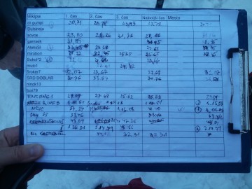 No, pa še nekaj statistike. Tekme se je udeležilo 15 geolovcev. Ker GG team kot organizator ni nastopal, sta pa dva geolovca sodelovala z več ekipami, je bilo na koncu na tekmi 16 sodelujočih. Najhitrejši čas je dosegel Miha1605 (21.21), ki je prav z zadnjo vožnjo premagal svojega brata, Sokola^2 (21.86). Tretji je bil AleksSI (23.68). Seveda pa so bile to olimpijske igre, kjer je bilo res važno sodelovati in ne zmagati. Zato je medaljo za prvo mesto dobila tudi ekipa Kremenčkovi 2, ki se je po zastoju sredi proge spuščala do cilja 2.14.79. Seveda dve minuti, da ne bi komu na misel prišle kakšne ure ali celo daljše časovne enote. Drugi naj čas je imela Ines in sicer 1.15.08, tretjega pa Nejc z 1.06.08.