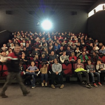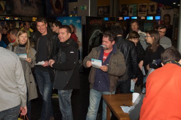 Seveda smo bili organizatorji kljub dolgim pripravam malo nervozni. Z daljšanjem vrste pred sprejemnico, kjer so obiskovalci prevzeli vstopnice in glasovalne lističe ter oddali sledljivčke, pa so se začeli daljšati tudi naši nasmehi. Prevzetih je bilo 144 vstopnic. Torej točno toliko, kot je sedežev v dvorani. Pol ure za klepet pred začetkom je minilo kot bi mignil, dvorana se je napolnila, po uvodnih nagovorih so ugasnile luči in projekcija se je začela. Najprej smo v kratkem uvodnem filmu predstavili aktivnosti, ki jih je SGK organiziral ali soorganiziral v letošnjem letu (zdaj, ko so tako lepo zbrane, so celo opazovalci od zunaj ugotovili, da je bilo leto res izjemno), nato pa smo premierno prikazali še film, posnet na prvem skupnem srečanju slovenskih in hrvaških geolovcev s hollywoodsko zvezdniško zasedbo.