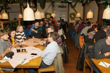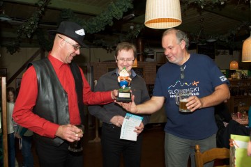 Družabni del pri Kratochvillu v BTC je presegel vsa pričakovanja, saj je tudi optimistično rezerviranega prostora za 80 ljudi zmanjkalo, še preden so prišli zadnji udeleženci. Nekateri so zato bolj krožili in žejo gasili bolj ali manj stoje. To ni pregnalo dobre volje. Mnogi so povedali, da se že dolgo niso tako načvekali s starimi in tudi novimi geolovskimi prijatelji. Kovali so se načrti za nove geolovske podvige, nove klubske projekte, skupni geolov. Uradno razglasitev rezultatov, ki je zaradi omejitev na lokaciji potekala brez ozvočenja, je tako marsikdo preslišal. Vendar ne dvomimo, da je večina prej ali slej izvedela, kateri film je zmagal, in si v živo ogledala Veliko nagrado. Letos se zdi palček še posebej imenitno kičast, prav vsak geolovski filmar bi si ga želel na svoji polici. 😉 Srečnega dobitnika GIFF geokovanca, ki smo ga izžrebali iz oddanih glasovnic, smo kar nekaj časa iskali med prisotnimi, potem pa le ugotovili, da bomo morali geolovcu z vzdevkom audittrsi nagrado predati ob kakšni drugi priložnosti. Kar se je tudi zgodilo.