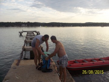 Pozno avgusta je končno prišlo do tega, kar smo premlevali in dogovarjali dlje časa. Veslanje in pobiranje zakladov. Toda zgodilo se je še nekaj. Čoln je ostal isti, število mornarjev pa se je občutno povečalo. Tako se nas je na koncu v čoln, ki je pogojno za štiri, nagnetlo pet. In to ne drobnih otrok, temveč krepkih dedcev. Zgodaj zjutraj se je del posadke odpravili na pot, opremljen z gumenjakom (na vesla) proti cilju. Družba tigija67, gamska, krossnika in vincenca1 je dokaj hitro prišla v Rovinj, kjer so pobrali še mene, ki sem počitnikoval v bližnjem kampu.