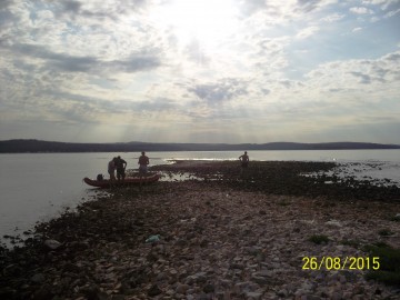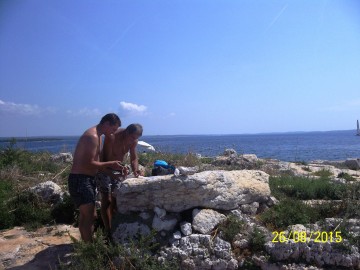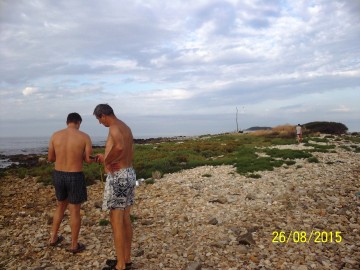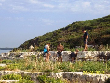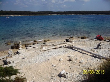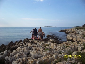 V polni sestavi smo se odpeljali do luke Veštar, kjer smo napihnili čoln pripravili vse potrebno za na pot in naša avantura po otočkih se je pričela. Zjutraj je bilo še hladno, toda dan je bil sončen in hitro se je grelo. Najprej smo veslali na otoček Pulari, od tem odrinili do Revere in končno do Male Sestrice. Ob vračanju smo se ustavili še na bližnjem otočku Veštar, kjer smo imeli zadnji postanek in našli zakladek na prvem delu poti. Po končanem tem delu veslanja, smo se z avtom zapeljali v zalivček blizu kampa San Polo. Od tam smo se odpravil najprej na otoček Pisulj, nato nadeljevali veslanje do otočka Gustinja, Porerja in našega zadnjega otočka iz te serije Kolona. Čakalo nas je še dolgo veslanje proti obali, ki smo ga tako kot celo našo pot začinili z vrsto zbadanj, dovtipov, šal, domislic in seveda tudi ocenjevanjem bolj ali manj slečenih pripadnic ženskega spola na obali in v morju ob njej. Tipični dedci, kaj se tu more.