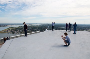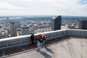 Znašli smo se na strehi. Pravi strehi prave stolpnice z orjaško klima napravo, omaricami za inštalacije vseh vrst, heliportom in mehko pohodno hidroizolacijo, na kateri so visoke pete strogo prepovedane. Kamor sicer poleg vzdrževalcev in občasno geolovcev zaidejo samo še tipi, kot sta James Bond in Spiderman. Nadaljevanje je bilo zelo predvidljivo: postal sem obraz v množici, ki je tekala po strehi z enega konca na drugega z odprtimi očmi in usti. Doživetje je bilo res enkratno. Razgled, ki ga ne zastira kovinska mreža ali dvojno steklo, skozi katerega se ne da fotografirati brez odseva. Presežek, ki smo ga med milijoni turistov v New Orleansu deležni le nekateri geolovci. Slike povedo vse.