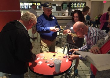Po kakih 20 minutah nas je Henry pospremil nazaj v dvigalo in poslal navzdol, Ken pa nas je v četrtem nadstropju usmeril v sejno sobo na skupinski zaključek dogodka. Vsi smo prejeli priložnostna darilca, pathtag kovanec in zbirateljske sličice ekipe Bamboozle (slednje si je nekaj geolovskih ekip iz Louisiane naredilo po vzoru na kartice s podobami igralcev bejzbola, nekaj podobnega kot Panini sličice nogometašev pri nas), izžrebani srečnež pa še Bamboozle pohodno palico. To je bil najbrž prvi srečelov, na katerem sem držal pesti, da ne bi bil izžreban. Pohodno palico je prejel v dar še eden od prisotnih vojaških veteranov (ja, v ZDA smo), uradni del dogodka pa se je zaključil s podelitvijo Bamboozle geokovanca kot nagrade za geolovske dosežke v regiji Louisiana/Mississippi. V klepetu z organizatorjema sem si priskrbel še nekaj podatkov za ta prispevek, potem pa poiskal izhod iz stavbe (ni bilo tako enostavno).