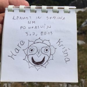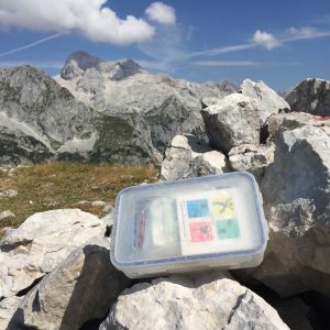 Na vrhu bo še tako fanatičnega geolovca najprej prevzel razgled, ki gotovo sodi med najlepše panorame v Julijskih Alpah. Potem se bo morda lotil sendviča, ker je od Krstenice le preteklo že nekaj časa, na koncu pa pride na vrsto tudi škatla. Ni je težko najti, saj jo je v zadnjih letih našlo veliko več bunkljev kot geolovcev. O tem pričajo vpisi v dnevnik, nekateri tudi prav nepričakovani. Sam sem bil četrti geolovec, ki je zaklad našel v zadnjih treh letih. Škatlica je v odličnem stanju, sem pa iz nje pospravil vse, kar vanjo ne spada (bonboni, vitamini, …). Domnevam, da so to v njej pustili nevedni bunklji.