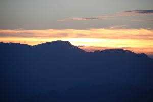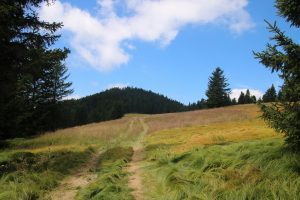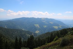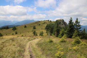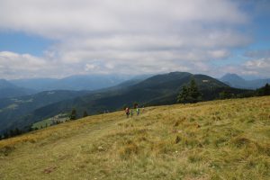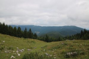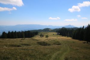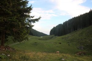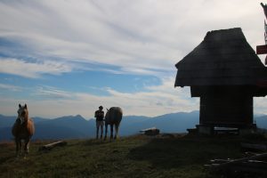 Pa ni bilo nič. Edini dim se je valil iz ogromnega dimnika nekje daleč spodaj v dolini. Prava vročina je ostala na nebu, sonce je sijalo. Nadaljevala sva po poti, na razglednem, širokem slemenu, pogledi so uhajali. Po poti pod Kernesom sva prišla do Komna. Na njem je možno slišati zgodbe iz preteklosti, le prisluhniti jim je treba. Spust na sedlo, vzpon, kar malo po svoje, naravnost, po komaj vidni stezici, do razglednega stolpa na Velikem Travniku. In nato nadaljevanje do koče, spoznavanje s kravami, ki so skrile zaklad tako, da ga je bilo res težko najti. Pot nazaj je bila znana. Toda srečanja na njej so bila nova, nadvse zanimiva, prijetna, nasmeh je še dolgo ostajal na obrazu. Večer je že položil svojo nežno roko na deželo, ko sva še zaokrožila, znova na Golteh, mimo Starih stanov in zgornje postaje nihalke nazaj do Alpskega vrta. Ta je spal, tišina je bila vse naokoli. Še en dan se je iztekel. Naslednji je že obetal nove pustolovščine. Golte padajo navzdol strmo, v prepade. Tirske peči. Toda to je že druga zgodba …