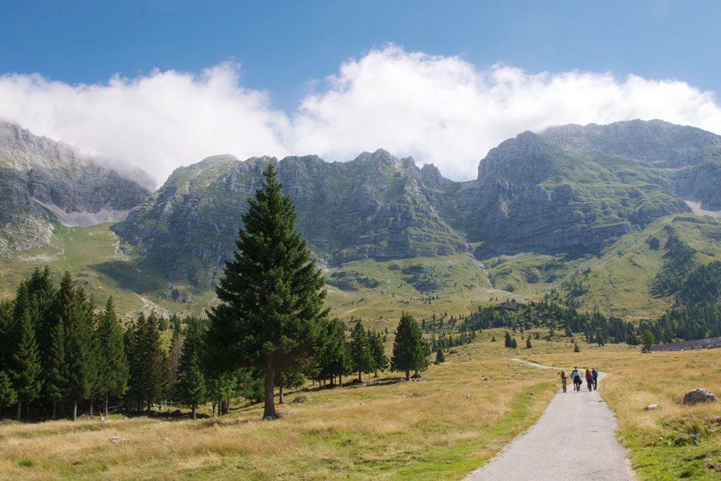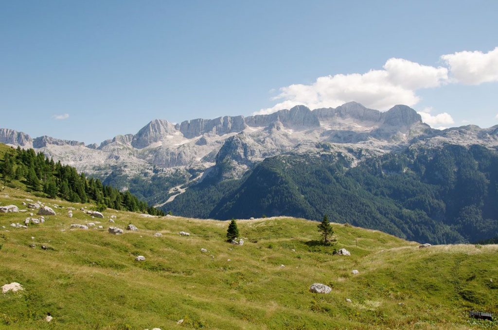 Izhodišče je na Montaževi visoki planoti (Altopiano del Montasio), sirarski planini, kamor pripelje strma cesta z Nevejskega prevala. Tako strma, da je bila nekoč zadnji klanec ene od etap kolesarske dirke Giro d’Italia. Z velikega parkirišča je cilj le neizrazit vrh na levem koncu grebena, ki kot orjaški zid zapira pogled proti severu. Pot se usmeri naravnost proti njemu mimo planinske koče, zaklada Altopiano del Montasio / Police, ki sta ga za seboj pustili ekipi emahana in kompaski, in naselbine svizcev, ki so tukaj druga najpogostejša večja kosmata žival.