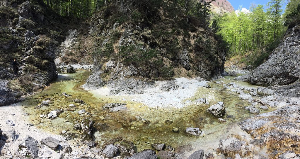 Slapov ni nikoli dovolj, sploh v času, ko imajo veliko vode. Naš obisk Zapotoških slapov v družbi kompaskov smo zaokrožili še z obiskom izvira Soče in najdbo drugega najstarejšega slovenskega zaklada. Kar dolgo nas je čakal. Potem pa smo pogled in navigacijske naprave usmerili navzdol po dolini. Najprej smo se ustavili v Končarjevem žlebu, ki ga krasi kakih 90 m visoko slapišče. Škatlice ob našem prihodu ni bilo tam, ko pa smo odšli, tega več ne bi mogli trditi. Ali je še tam, ne vem, saj je od našega odhoda ni našel še nihče. 😉 Lahko bi obiskali tudi Paverjev slap ali korita Mlinarice, velika in mala korita Soče ali Šunikov vodni gaj, če omenim samo nekatere. Žuboreče vode je vsepovsod dovolj. Mi smo našo geolovsko odpravo v Trento zaključili naslednji dan pri malo obiskanem slapu na potoku Ilovec, ki se skriva v globeli pod edino serpentino na slovenski strani predelske ceste. Vsaj kar se slapov tiče. Preden smo zaključili, je bila na vrsti še čezmejna avantura pri Raimundovem bunkerju.