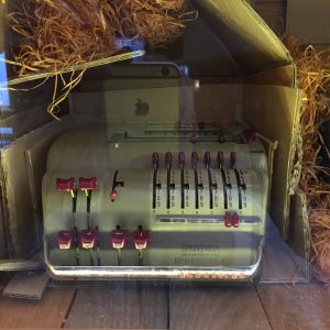 Tista “kaj je že to” Brušvig zadeva je zelo podobna “ankerci”, tanku, nekakšni mešanici med res primitivnim kalkulatorjem, naslednikom abaka in še bolj primitivnim printerjem. Na njej sem krepil mišice nekega poletja pred davnimi leti, med dijaškim delom v banki in izgubljal živce ob nerganju dooooolge kolone upokojencev, ki so seveda prav prvega v mesecu hoteli na svoje hranilne knjižice (se še kdo spomni, kaj je to bilo?) pripisati pokojnino. S premikanjem vzvodov si vnesel prejšnje stanje, prištel ali odštel polog ali dvig in na koncu je ankerca z glasnim ropotom novi saldo odtisnila v knjižico.