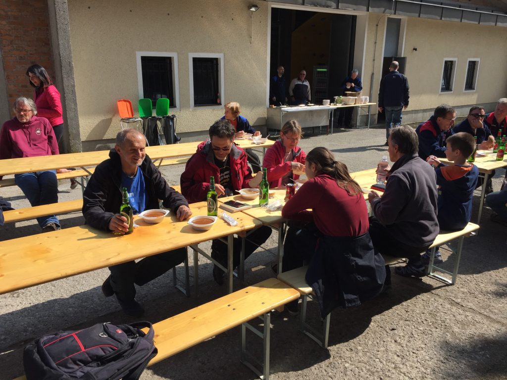 Na tem mestu so nas dohiteli komunalci s kamiončkom. Sledilo je slikanje treh četrtin udeležencev s približno toliko skupnega izplena akcije, nato pa smo nabrano prepustili v nadaljnjo obdelavo kranjski komunali. Na izstopu iz kanjona smo se pridružili skupini, ki se je osredotočila na še eno geolovcem dobro poznano področje in ji med potjo navzgor prispevali še nekaj za njihove polne vreče. Zaključili smo na zbornem mestu oziroma nekoliko stran, kjer smo na posebej zato postavljenem ekranu spremljali razplet ekipne tekme v Planici. Zato ne vem, ali si je kdo privoščil obljubljane palačinke ali ne. Vem pa, kako daleč je poletel Kraft. No, ni čisto res, da smo zaključili tukaj. Večina (če ne kar vsi) je odšla še na kosilo in ob golažu ali pasulju in osvežilni pijači pritisnila piko na i še enemu uspešnemu CITO dogodku.