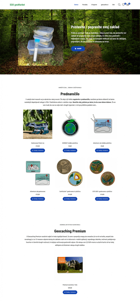 Za mnoge ni več presenečenje: tudi Slovenski Geocaching klub ima svojo spletno trgovino. Že skoraj leto bo od tega, kar smo ugotovili, da odpoved prvega slovenskega mega-dogodka (ki se zdaj imenuje geoLjubljana 2022 in bo 4. junija 2022) ne pomeni nujno, da mora vse delo s pripravami (za nekaj časa) v nič. Z nekaj dodatnega truda smo tako spletno trgovino, sprva namenjeno le prodaji z mega-dogokom povezanih artiklov, predelali v (skoraj) pravo spletno trgovino SGK geoMarket.