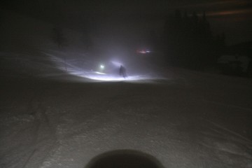 Ko smo spili že drugo pivo, je bil zadnji čas, da odrinemo. Čakala nas je še dolga smuka v dolino. Pripravili smo se, prižgali lučke in odvijugali. Lučke so bile po celotni progi, nekateri smo se spuščali, drugi so se vzpenjali. Brez težav smo vijugali do parkirišča, ki je bilo tokrat povsem polno, kot na kakšen lep in sončen dan. Pa srečanja še ni bilo konec. Udeleženci smo šli še do Pepija, servisa in izposojevalnice smučarske opreme. In seveda bara. Tam smo pri še enem zlatem napitku dokončali naš klepet, potem pa odrinili vsak na svoj konec, loviti svoje sanje.