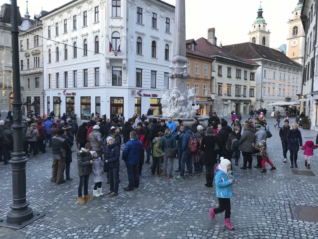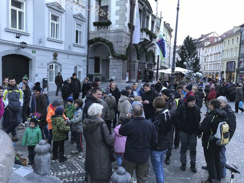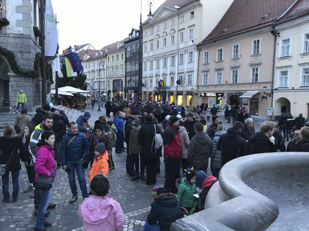 V soboto zjutraj, na dan srečanja, smo bili polno zaposleni z izdelavo plakata in vpisnega dnevnika. Pri tako številčni ekipi se je bila večja težava domeniti, kdo bo kje risal in ustvarjal, kot pa samo delo. Vsi smo bili nestrpni in smo z velikim nemirom pričakovali, da pade mrak. Seveda smo se preveč obirali in nas je pred Robbovim vodnjakom pričakal pravi šok! No, izkazalo se je, da je bila le gruča turistov, saj so se geolovci strateško premaknili na območje med vodnjakom in mestno hišo. Nismo pa računali, da je to naenkrat postala izvrstna pozicija tudi za druge slave željne osebke.