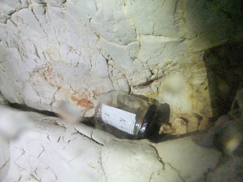 Sledi plan 3: spet pišem lastniku za namig. Spet hitro dobiva potrditev, da je stena prava, da je jama prava, da je torej vse ok. »Franci, zdaj pa tak. Jaz imam s sabo špago in vponko. Če bo možno kje vponko potisniti v kakšno luknjo, se potegnem še kakšen meter višje, sicer bo pa to DNF!«. Na srečo sem našel eno ful malo luknjo, tako da niti prsta NiSEM mogel notri potisniti, ki pa je imela vertikalno prečko, skozi katero sem lahko zvezal špago in na koncu naredil osmico. Vmes sem si dal še vponko, da sem lahko stopil na vmesno stopničko in potem na eno skalno stopničko, na kateri sem stal samo s prsti na nogah. Takoj, ko sem se povzpel po »easy to climb wall« za kakšen meter višje, sem zagledal tako želeno zeleno škatlo.