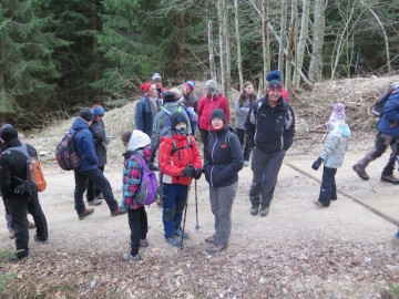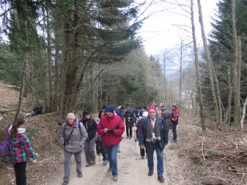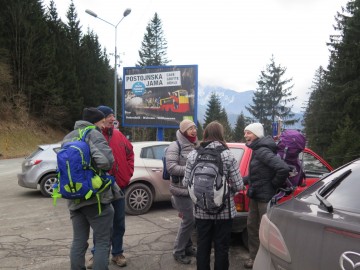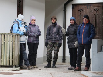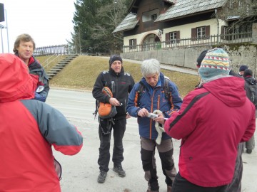 Na zbirni točki pa je sledil pravi šok, saj je še dan pred srečanjem svoj prihod napovedalo le pol ducata ekip! Tako pa je bilo kar nekaj energije potrebne, da smo lahko vsem stisnili roko in izrekli voščilo ob pričetku novega leta. Za izgube kalorij so poskrbele sovce, ki so delile pozdravne kifeljčke. Ko so vse ekipe vpisale v priložnostni dnevnik srečanja, je dr.gumpi kleno izdrdral pozdravni nagovor in podal približni potek pohoda. Mimovozeči avtomobilisti so z začudenjem opazovali množico zbranih, ki se je pričela premikati v smeri najbližjega zaklada Passkontrolle! Haben Sie TBs zu verzollen?, ki je tako dobil prve letošnje obiskovalce.