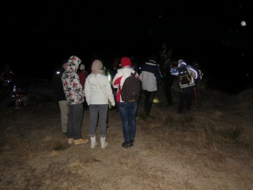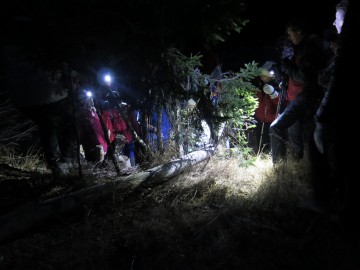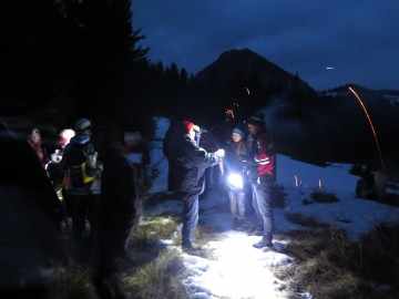 Ko smo na Ankovi planini izvedeli, da bi bili morali že v prvem zakladu poiskati polovico koordinat za začetek nočnega zaklada, smo kar malo zajeli sapo. A k sreči vemo, da je na srečanjih za take pomembne podrobnosti posebej poskrbljeno. Pa tudi, da se ne bi kdo kam izgubil. Tako smo z Ankove planine pogumno zakorakali dalje v zgodnji večer in poiskali obljubljene iskrice. Od tam dalje smo spet vzeli pot pod noge. Iskrice so nas vabile vse globlje v temneči gozd. Bilo pa nas je veliko in zato nas ni bilo prav nič strah. Kmalu se je gozd spet odprl in pred nami se je razgrnila še tretja planina, obljubljena kot cilj današnjega pohoda. Za hip smo še ujeli povsem drugačen razgled proti zahodu, proti strminam in severni steni Košute, nato pa smo se posvetili nalogi: kako in kam usmeriti svoj meč, da bo prav! Zviti Rebrčan ni bil od muh, a tudi naši meči so bili ostri in so kmalu razkrili mesto njegovega zaklada. A vseeno smo že pomislili, da smo merili narobe, saj nas je za vogalom pričakala še novoletno okrašena smrečica. Gotovo je pravi zaklad pod njo!
