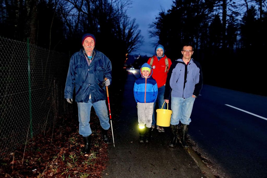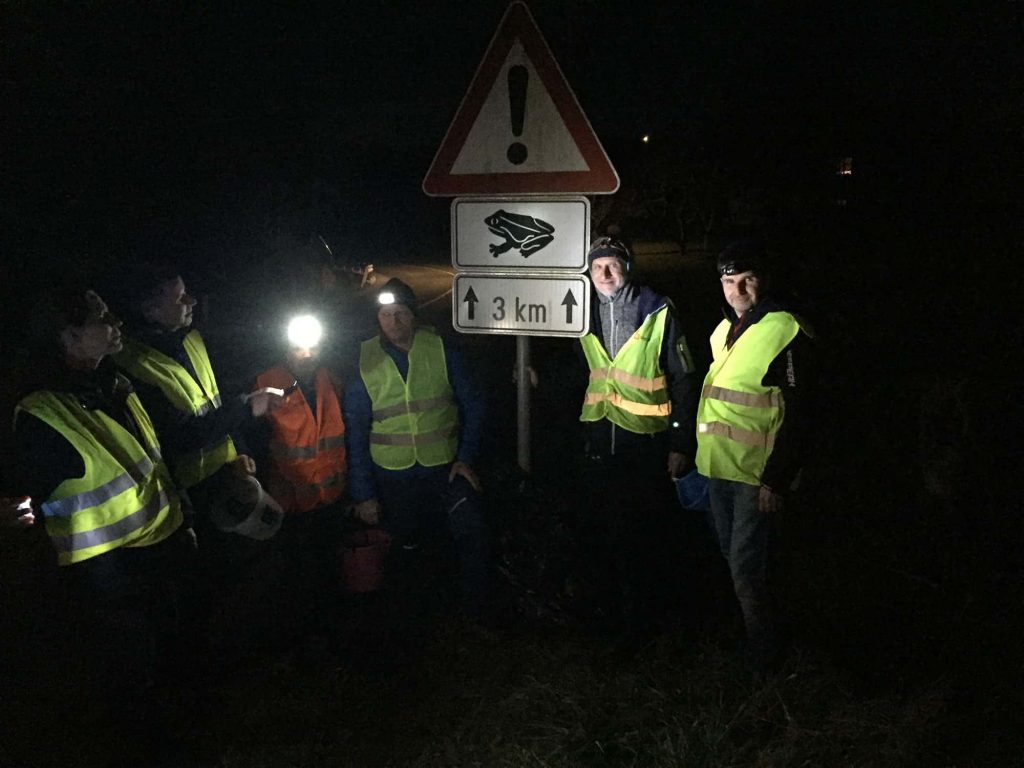 Dogodek je bil najprej načrtovan v Hrašah, potem pa smo po letih dobrih namenov le kontaktirali prostovoljce v Šinkovem Turnu in se na hitro dogovorili, da se jim pridružimo. Tudi s tem dogodkom je bila podobna zgodba kot z ljubljanskim: do zadnjega so bile med prijavljenimi ekipe iz Avstrije številčnejše od domačih. Ko se je na prizorišču poleg nenajavljenih, a pričakovanih, pojavilo še nekaj nenajavljenih in tudi nepričakovanih, je (geolovskemu) koordinatorju dogodka za nekaj trenutkov odneslo pokrov. Ko se je le pomiril, smo se razdelili v nekaj skupin in odšli vsak v svojo smer ob ograjah, postavljenih ob cesti Koseze-Mengeš in lokalni cesti v Šinkov Turn. Posebnost izvedbe akcije na tej lokaciji je, da zbranih dvoživk ne nosimo samo čez cesto, ampak jim ponudimo taksi službo kar do Phliškega bajerja (ki se izgovori Pəhliški in ne Fliški). Mrzlemu vremenu navkljub je bil ulov kar dober. Prve najdbe, živahne rosnice, so se razveselili štirje avstrijski kolegi. Geolovci smo v glavnem pobirali, kar je ostalo za skupino zelo zagnanih otrok, ki se je neodvisno od nas tudi udeležila akcije. V njihovih vedrih je kar gomazelo, a tudi v naših so se potniki za bajer množili. Še največ smo jih našli v potočku v obcestnem jarku, ki so ga prezebli krastački uporabljali kot jacuzzi. Voda v njem je bila vendarle nekaj stopinj toplejša od okolice. Najbrž je ravno obilo vode privabilo tako število dvoživk, da sta bili presenečeni tudi lokalni prostovoljki. Nekaj dni nazaj, ko je bilo topleje, so jih prenesli na stotine, na Žabji večer pa smo se vsi skupaj v dobrih dveh urah morda tudi približali stotici.