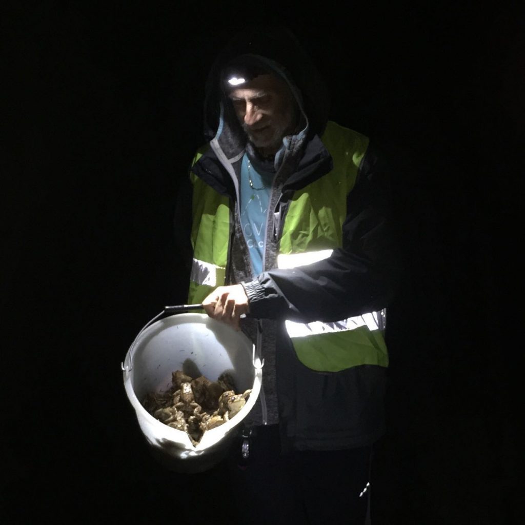 Na Okroglicah pod Lisco smo se zbrali ob 19:30. CITO dogodka se je udeležilo 7 geolovskih ekip. Najprej smo malo poklepetali, opravili obveznosti vpisa v dnevnik in razdelili CITO kartončke. Ob 20:15 se nam je pridružil g. Marjan, starejši gospod, ki že nekaj let na tem območju skrbi za pomoč žabicam. Najprej nam je razložil, kakšne dvoživke lahko pričakujemo in kako se jih pobira. Dogovorili smo se, da dvoživke štejemo za njegovo statistiko, ter v kolikor najdemo kakšno, ki je drugačna od drugih le to poslikamo. Pokazal nam je tudi “žabji podhod”, ki ga je na njegovo pobudo uredila občina Sevnica in skozi katerega je nekaj dvoživk že našlo pot do jezer. Na dolžini približno 500 m smo (predvsem otroci) pobrali 61 dvoživk in našteli 7 povoženih. Med temi so bile tokrat samo 2 različne vrste. Dvoživke smo odložili v jezero. Po končanem pobiranju se nam je Marjan lepo zahvalil in nas povabil, v kolikor ima kdo čas, da pride pomagat pri postavljanju ograj v nedeljo, ter nas povabil, da se naslednje leto spet srečamo.