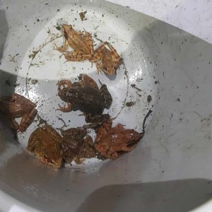 Rezultat akcije je bil okoli 80 pobranih krastač, 2 sekulji 4 rosnice in 2 pupka. Veliko več žabic smo prenesli na drugo stran proti gozdu, saj so že opravile svoje delo v ribniku. Žabja selitev se nadaljuje …
