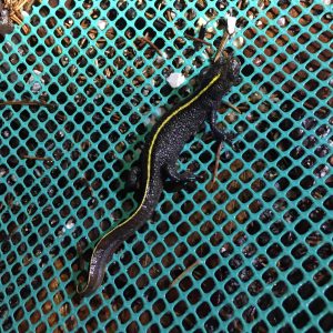 Ob povratku smo se z vsemi vedri ustavili pri ribniku in jih še enkrat prešteli: 52. Kar nekaj smo jih torej pozabili popisati. Dvoživke smo potem položili v vodo, na žalost pa je poleg njih zaplavala še Rubi. No, samo njena noga, tako da je bil čevelj moker. Še nekaj krastač in krastačkov smo pobrali ob poti nazaj na izhodišče, tako je dnevna bera znašala tam nekje okoli 62 osebkov.