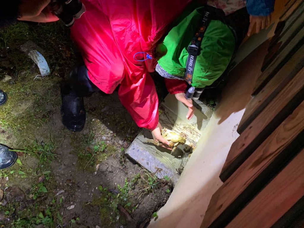 K sreči se je prvotni naliv unesel in smo lahko žabji lov opravili med lažjim pršcem, tako da je velika glavnina petkovih prostovoljcev vztrajala do konca akcije. Tudi pozna ura ni bila prehud napor za najmlajše udeležence in so vztrajali do zadnjega dejanja, ko smo izpustili žabice v mlako na drugi strani ograde Živalskega vrta. Ker se tu izvaja resen nadzor, namreč ograja ob cesti je označena s sektorji, so nam hitro posredovali končni rezultat akcije: 98 prenešenih dvoživk, od tega velika večina navadnih krastač, 4 sekulje in 1 rosnica. Poleg prenešenih smo opazili še 4 povožene in 1 na pol pojedeno navadno krastačo. Najmlajši so opazili tudi 3 majhne zelene rege, ki pa smo jih pustili, kjer smo jih našli.