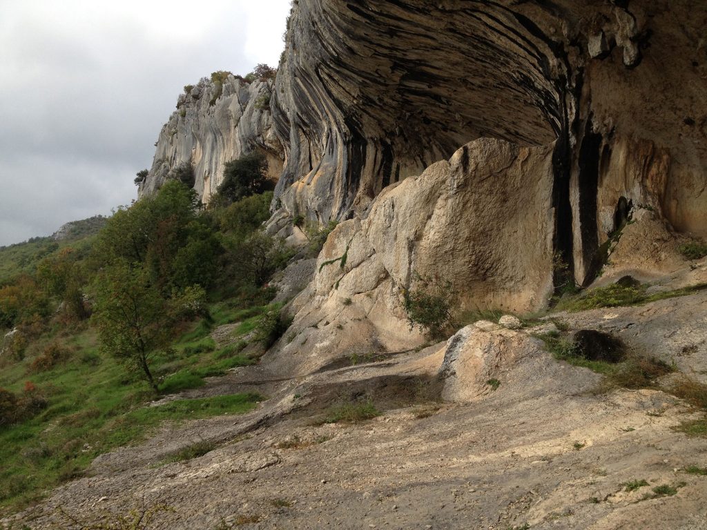 Meni je na Krasu vedno krasno. Prvič sem ušesa Istre obiskal pred natanko šestimi leti ob neki posebni priložnosti. O njih sem prebral na spletu že kaki dve leti prej, pa so počakala na prav tisti dan. Sprehodili smo se po grebenu, našli zaklad na njem, in se spustili do spodmolov. Takrat se mi EarthCache zakladi še niso zdeli pravi zakladi, zato se s tem zakladom nisem prav posebej ukvarjal. Niti podatkov nisem zbral (a sem se ponje odpravil že čez nekaj mesecev). Vrnili smo se po isti poti, saj z našo ljubo psičko Tress nismo mogli po feratici. Hoje tja in nazaj ter martinčkanja na sramežljivem jesenskem soncu (bele skale spodmolov delujejo kot kak reflektor, tudi za sevanje in ne samo za zvoke iz doline, kar jim je dalo ime) je bilo za dobre tri ure. Človek postane v tem času že lačen. Na srečo je bila takrat v Sočergi gostilna, prav tako nenavadna kot ušesa Istre. Če je še in jo še vodi birt MIlan, obisk toplo priporočam. Fuži s tartufi so nadzemeljski, celotna uporabniška izkušnja pa prav tako meji na nadrealizem. 😂